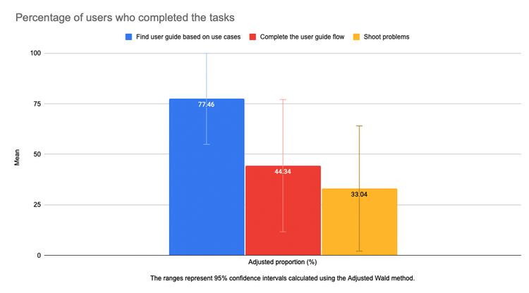The data represented the percentages of users who can complete the tasks and the overall points that users rate for the new function.